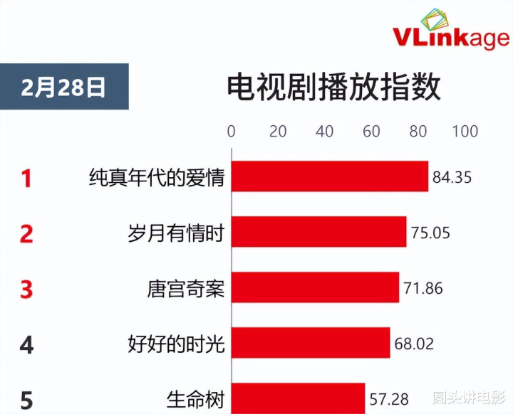截止发文时间,从“Vlinkage”数据显示可知,当前热播电视剧中,播放指数排行榜前五分别如下: