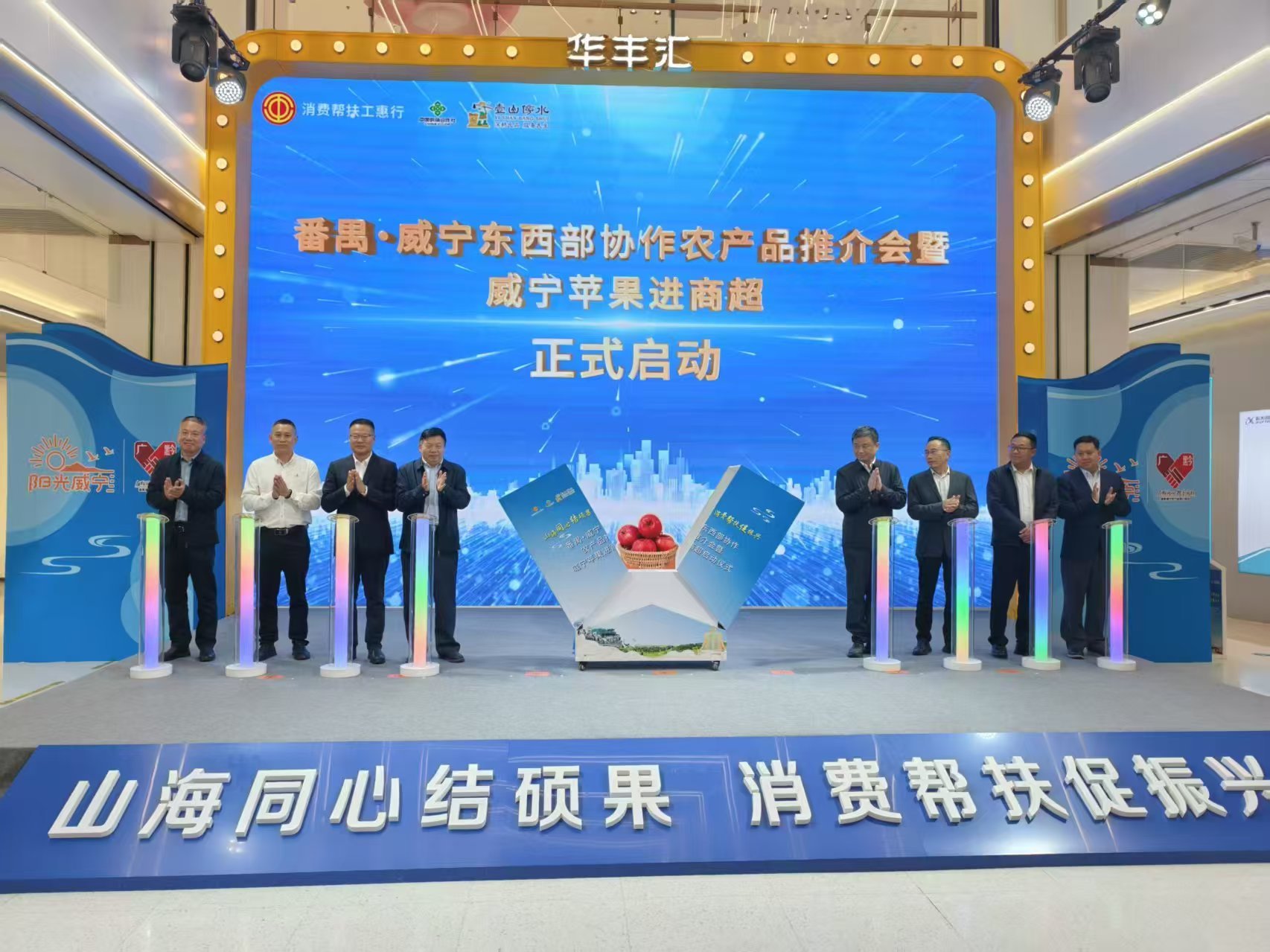 12月5日,消费帮扶工惠行——“山海同心结硕果·消费帮扶促振兴”广州番禺·贵州省毕节市威宁东西部协作农产品推介会暨威宁苹果进商超活动在华丰汇举行,活动旨在深化东西部协作,助力威宁优质农特产品走向更广阔市场。