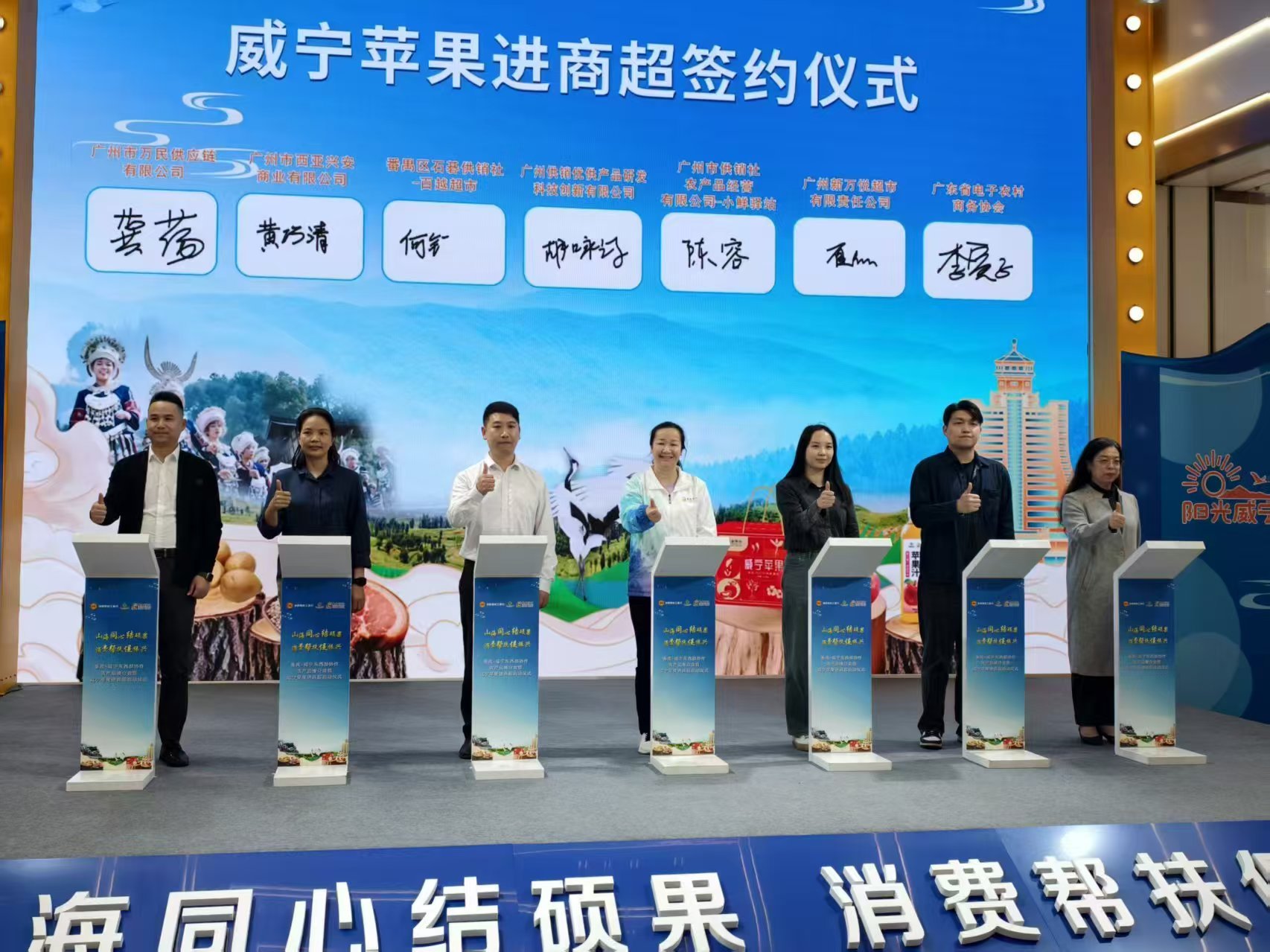 广州供销优供产品研发科技创新有限公司与广州市西亚兴安商业有限公司、广州市供销社农产品经营有限公司、广州市万民供应链有限公司、广州新悦超市有限责任公司、广东省电子农村商务协会、番禺区石碁供销社进行签约,通过线上线下相结合的方式,帮助威宁苹果通过多种便捷渠道销售。