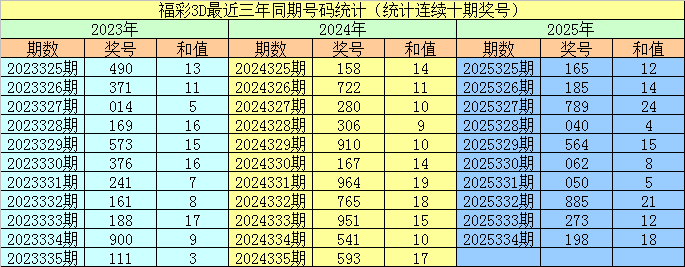 福彩3D上期奖号为198,去年同期与今年同期前20期奖号对比。